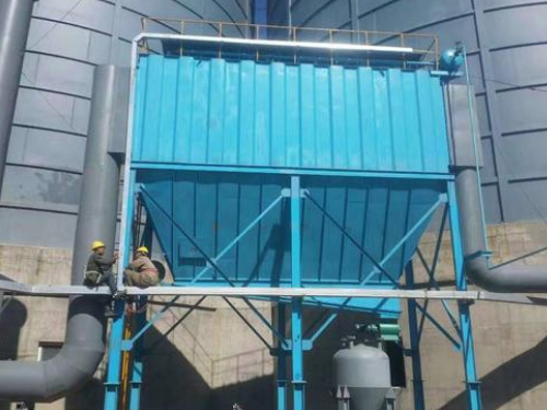 YMD-I型低壓噴吹脈沖除塵器由濾袋組件、導(dǎo)流裝置、脈沖噴吹系統(tǒng)、除灰系統(tǒng)、控制系統(tǒng)、離線保護系統(tǒng)、箱體等組成。脈沖布袋收塵器含塵氣體由導(dǎo)流管進入各單元室,在導(dǎo)流裝置的作用下,大顆粒粉塵被分離后直接落入灰斗,其余粉塵隨氣流均勻進入各倉室過濾區(qū),過濾后的潔凈氣體透過濾袋經(jīng)上箱體、提升閥排風(fēng)管排出。當過濾袋表面粉塵達到 厚度時,濾袋內(nèi)外的壓差就會逐漸增加;當壓差達到設(shè)定值(由壓差儀控制時久來自貯氣罐的空氣就會迫使脈沖閥的膜片自動打開,輸送 量的空氣,通過風(fēng)管由噴嘴噴入濾袋內(nèi),進行在線自動反吹清灰,抖落濾袋上的粉塵。落入灰斗中的粉塵經(jīng)卸灰閥排出后,利用輸灰系統(tǒng)送出。